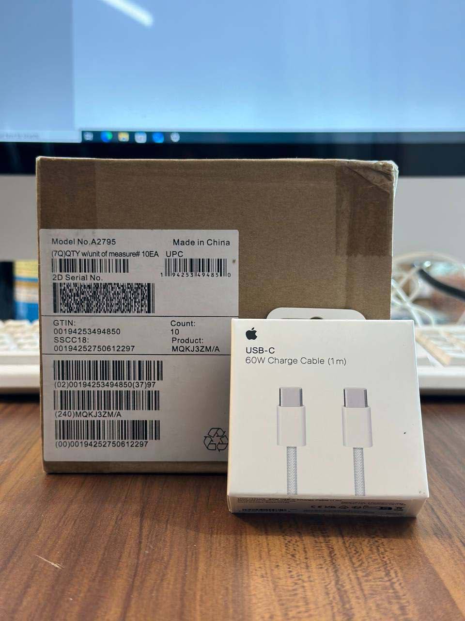 کابل شارژ اصلی آیفون 16 اورجینال اپل با دو سر تایپ C، روکش کنفی مقاوم، طول 1 متر و پشتیبانی از فست شارژ. موجود در نسخه وارداتی چین
