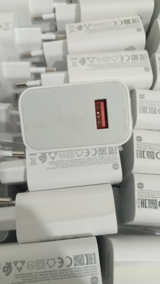 فروش عمده ۲۰ تایی شارژر شیائومی 33 وات دو پین سرکاراتنی اصلی بدون کابل+۱ عدد کابل هدیه تایپسی